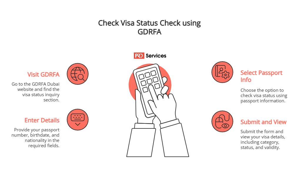 - Visit GDRFA Dubai — Visa status Inquiry.